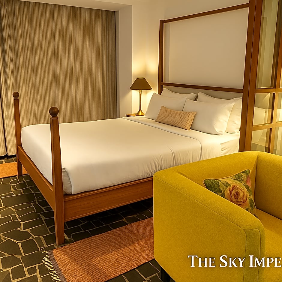 The Sky Imperial Aarivaa Luxury Stays is a 5-star hotel in Rajkot, India, located just 1,1 mailia from the city center. Address: Race Course 14, Janta Janardan Society, Race Course Ring Road, Nr. Airport Road, Rajkot, Gujarat 360001. This property sits in the Race Course area, offering easy access to local sights and a taste of luxury.